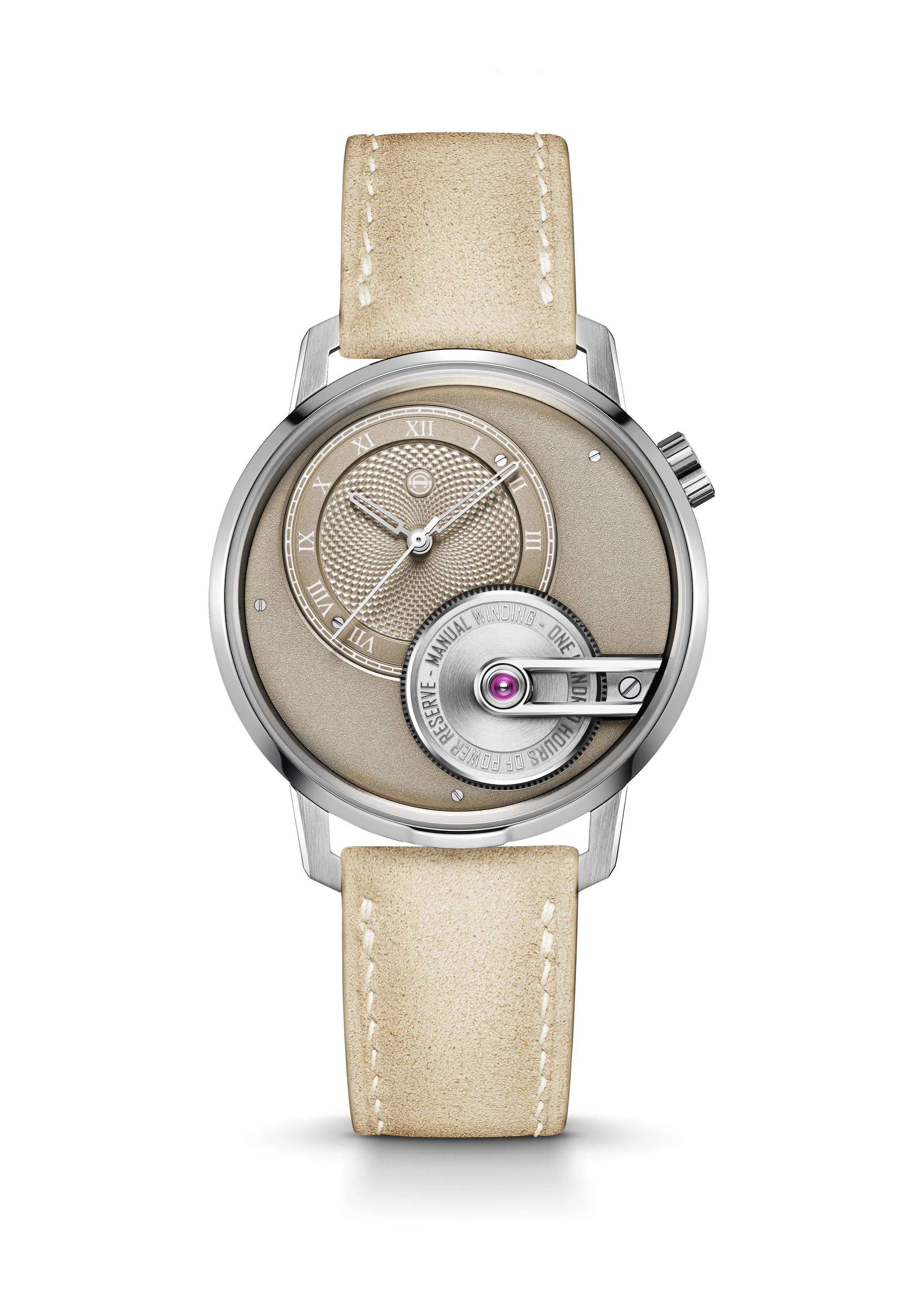 Dial: Sand, off-center, guilloché, subdial - frosted